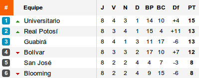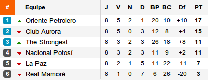 Grâce à ce succès, Oriente Petrolero prend les commandes du groupe B, pofitant de la défaite d'Aurora à San José. Les deux équipes comptent respectivement six et quatre points d'avance sur le duo The Strongest - Nacional Potosí qui se disputera le dernier ticket pour les demi-finales. Les Patalados qui jouent le maintien avec San José ont réussi à revenir sur The Strongest en arrachant un point lors du Clásico potosino.