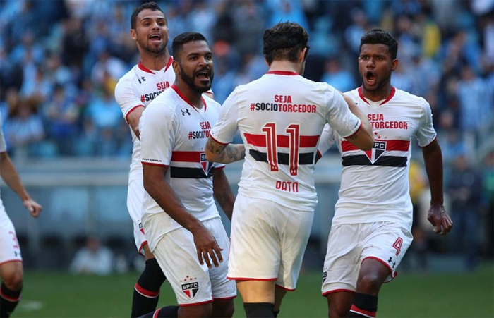 L’occasion était donc belle pour Grêmio de prendre le fauteuil de dauphin. Mais pour cela, le Tricolor devait se défaire de l’autre Tricolor, celui du Morumbi, São Paulo. Le duel des Tricolores fut animé même si les occasions somme toute assez rares. Plus fluide collectivement, São Paulo se procuraient les meilleures situations du premier acte, la plupart pour Alexandre Pato qui allait être récompensé de son début de match à dix minutes de la pause après un enchaînement de grande classe. Mené au score, Grêmio aurait pu revenir quasiment immédiatement sans l’énorme sortie de Renan devant Fernandinho. Le second acte était identique : plus de fluidité collective côté São Paulo, quelques situations pour Grêmio. Il faudra cependant attendre les ultimes instants pour que le score évolue. Rogerio inscrivait son deuxième but en trois apparitions avec le Tricolor, Everton réduisait l’écart. São Paulo s’impose à l’Arena do Grêmio et revient à quatre points de sa victime du jour qui elle, se retrouve à neuf points du leader.