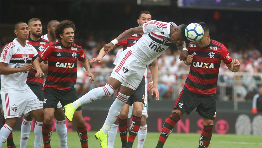 Pas le temps pour Flamengo de déblatérer sur cette affaire. Sur le coup d’envoi les joueurs profitent de l’apathie des défenseurs tricolores. Renê adresse, des 35 mètres, un long centre millimétré pour la tête d’Uribe. Esseulé au milieu de trois défenseurs, l’attaquant place sa tête et égalise. 1-1 à la mi-temps. La seconde période repart sur les mêmes bases pour São Paulo. Dès la 49ème minute, Helinho est lancé côté droit, le gamin de 18 ans repique dans l’axe et enroule sa frappe à l’entrée de la surface. Délicieusement caressé, le ballon trouve le petit filet et redonne l’avantage aux tricolores. Comme souvent cette saison São Paulo recule et subit la pression de Flamengo. Morumbi est finalement assommé à la 81ème minute par Vitinho. L’ailier enrhume d’un crochet et d’un petit pont le côté droit de la défense paulista et centre à ras de terre. Détourné dans un premier par le portier Sidão, le ballon atterrit dans les pieds de Rodinei qui pousse le ballon au fond des filets. 2-2 score final, ce nul n’arrange pas les deux clubs qui voient Palmeiras s’échapper suite à sa victoire 3-2 au dépend de Santos. Flamengo compte à présent cinq points de retard tandis que São Paulo pointe à neuf points.
