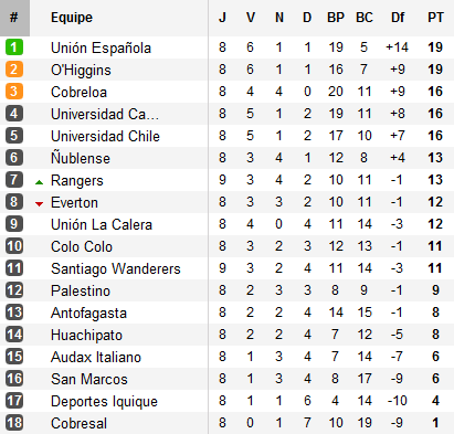 Finalement, le seul absent reste Colo Colo. Après avoir viré Omar Labruna, les Albos pointent en dixième position, à huit points des leaders.