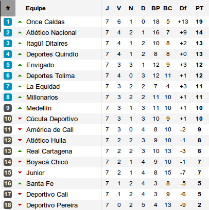 Septième journée et Once Caldas écrase toujours la Liga Postobon. Derrière, le chassé croisé continue entre neuf poursuivants séparés par seulement quatre points.