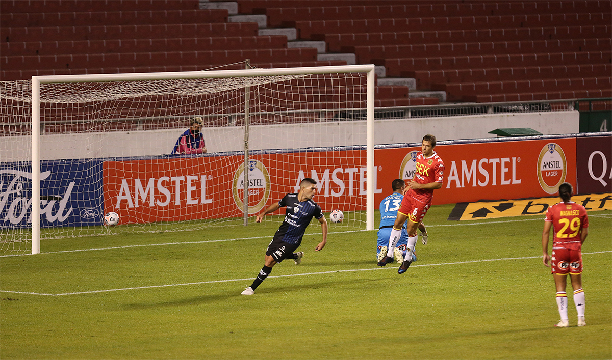 Dernier carton de la soirée, celui presque attendu d’Independiente del Valle. Si el Mono Sánchez avait été le héros du match aller qui avait vu Unión Española s’imposer contre le cours du jeu, il n’a rien pu faire au retour. Car les Negriazules maîtrisent à merveille jeu long et combinaisons rapide au sol, savent se montrer juste techniquement et possèdent un vrai 9, Brian Montenegro, auteur d’un triplé et d’une prestation XXL notamment dans son jeu de remise. Il n’y a ainsi pas eu de match, Independiente del Valle menait 4-0 à la pause (et aurait pu avoir une avance plus large) et s’est ensuite contenté de gérer, rappelant aux Hispanos à chaque réduction de l’écart, qu’il fallait rester à distance. Score final 6-2, on salive déjà par avance de voir ces hommes-là se frotter à Grêmio au prochain tour.