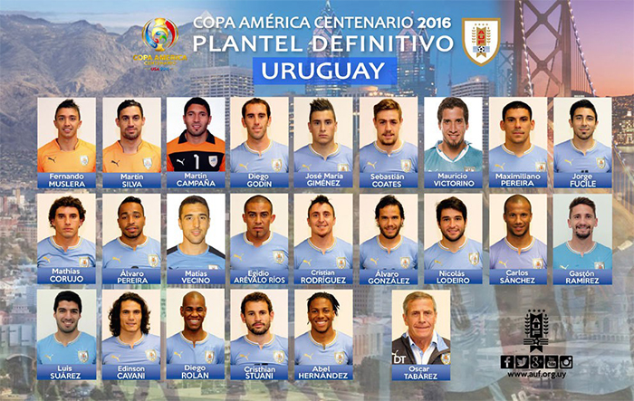 Pas de surprise, Tabarez poursuit son processus. A noter que Coates, blessé, est remplacé par Gaston Silva.