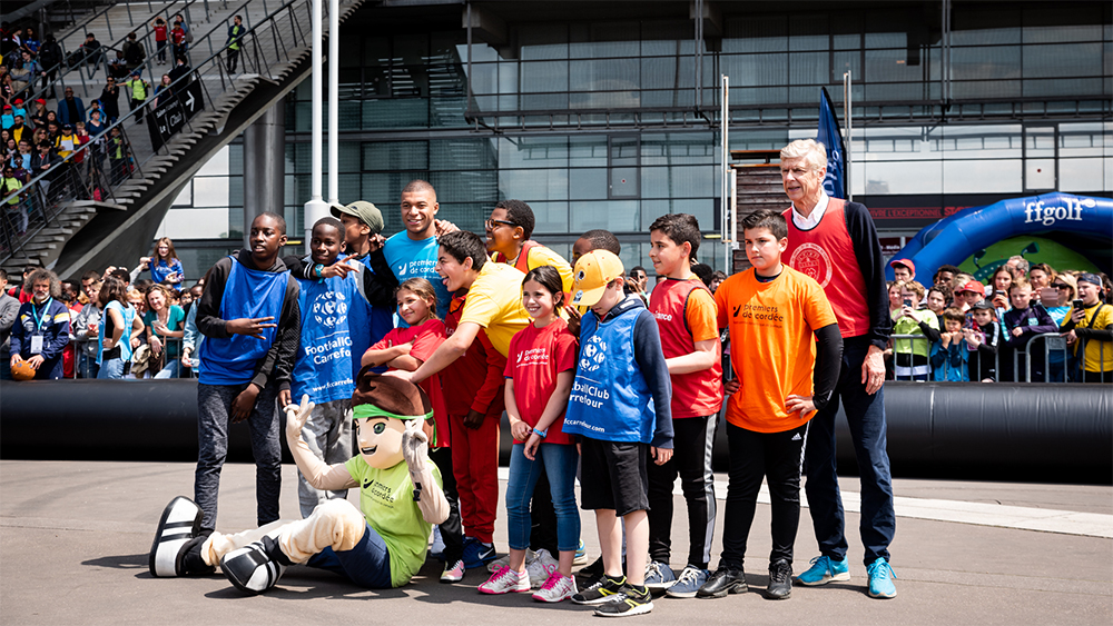 Sourires, cris d’enfants et balles en mousse : Kylian Mbappé, Arsène Wenger et Christian Jeanpierre sont venus jouer dans la cour récré’ du Stade de France lors de la 6e Journée Évasion de l’association Premier de Cordée. Pour aussi rappeler le rôle social du sport roi.