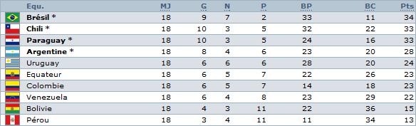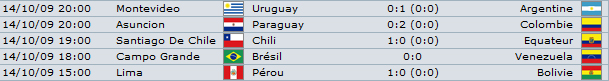 Ce qu’il faut retenir : Ils ont échappé au pire. Certes la manière n’était pas là, certes le match ne fut pas le grand match tant attendu, mais l’albiceleste de Maradona a su faire bloc et finalement n’aura pas vraiment tremblé pour décrocher son billet pour l’Afrique du Sud. Les uruguayens regretteront longtemps de ne pas avoir cherché à véritablement bousculé les argentins et devront ainsi passer par un barrage face au Costa Rica, marche qu’il n’avait su franchir il y a 4 ans (c’était face à l’Australie). Côté argentin, la qualification en poche, il faudra montrer autre chose pour espérer bien figurer lors de cette Coupe du Monde. Le grand perdant de la journée est donc l’Equateur, battu au Chili, restant ainsi aux portes de la qualification. Dans les autres matchs, Brésil et Paraguay n’ont pas réussi à s’imposer chez eux, alors que le Pérou a décroché une belle victoire devant la Bolivie.