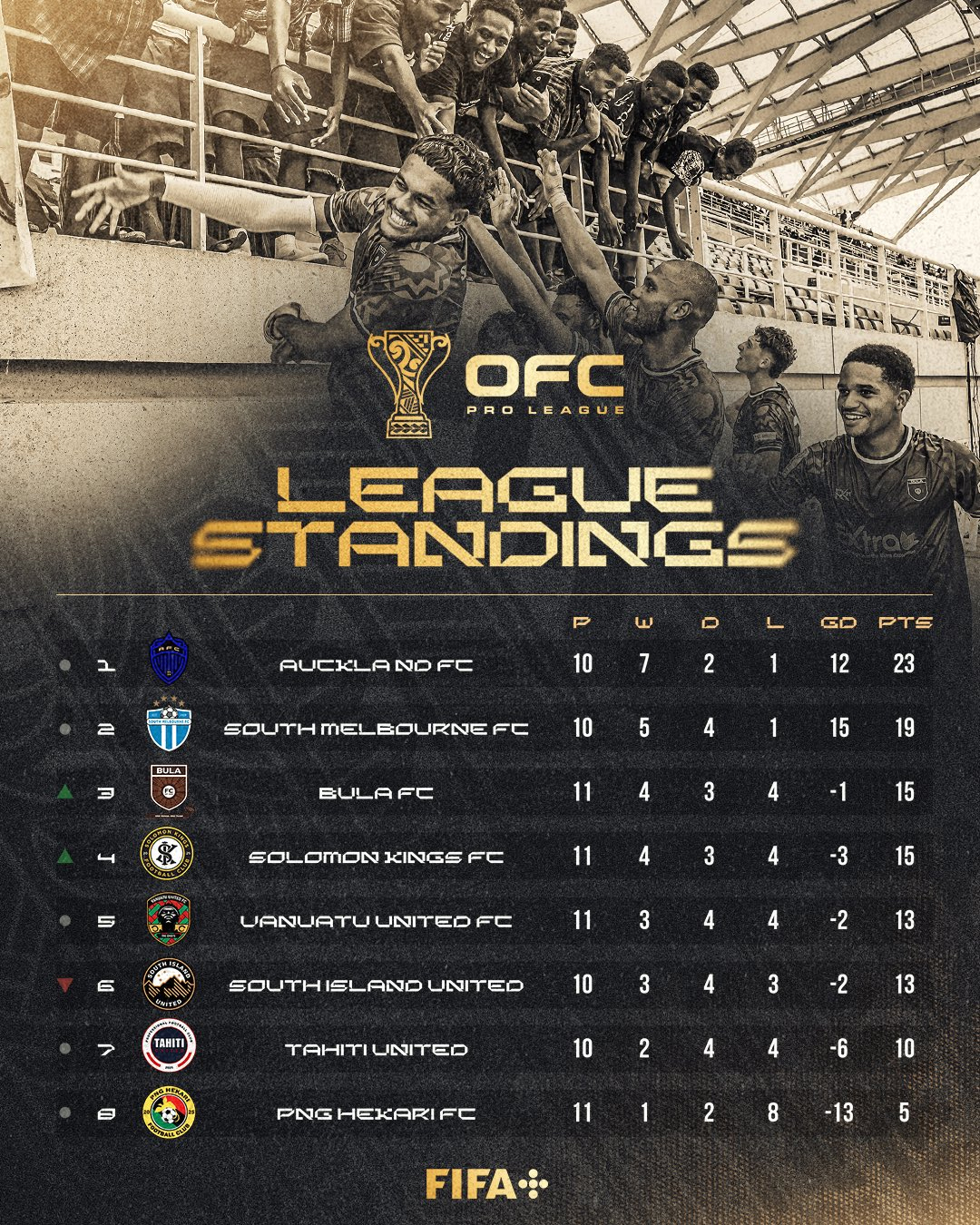 South Melbourne a vu son invincibilité voler en éclats face à Vanuatu United, permettant à Auckland FC de consolider sa première place. Dans l'ombre des cadors, Bula FC a réalisé un parcours spectaculaire pour s'installer sur le podium.