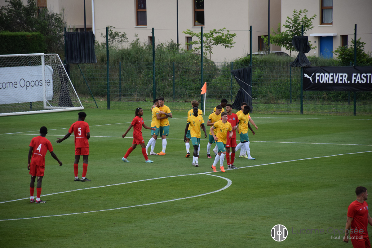 La deuxième journée du groupe débutait à Mallemort par le duel attendu entre une Australie dont on attendait mieux et une Sélection de Méditerranée qui avait été la bonne surprise de la première journée. La rencontre a donné lieu à deux matchs dans le match. Les jeunes Olyroos se sont en effet d’abord tranquillement installés dans la rencontre, profitant de quelques erreurs adverses et maintenant une pression qui leur a permis de rapidement s’échapper au score avec deux hommes impliqués sur les deux buts : Garang Kuol, passeur puis auteur de la frappe amenant le deuxième but, et Nishan Velupillay dans le rôle du renard des surfaces pour conclure les deux actions. Menée 2-0 en une vingtaine de minutes, la Sélection de Méditerranée semblait alors au fond du trou. Mais cette formation, toujours cohérente dans son jeu, dispose aussi d’une incroyable capacité de résilience. Emmenée notamment par un excellent Dylan Okyere, sorte de Jeremy Doku, les hommes de Nordine Assami sont revenus dans le match en un quart d’heure : d’abord sur un bel enchaînement d’Ibrahim Mandefu, ensuite sur une frappe de Theo Trinker. 2-2 à la pause, un autre match pouvait donc débuter. Il voyait les Olyroos plus pressants en deuxième période mais une sélection méditerranéenne qui répond au défi et se procure quelques situations. La rencontre était alors plus hachée et finissait par basculer en faveur des Olyroos en toute fin de partie.